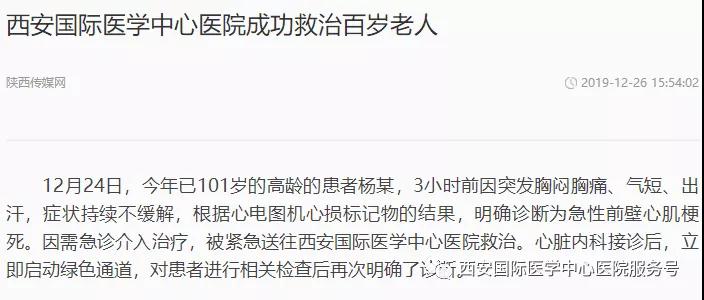 12月24日,心臟病醫(yī)院成功救治了一位101歲的老年患者。心臟病醫(yī)院CCU潘僑主任為患者在局部麻醉下行冠狀動脈造影+支架植入術。目前,患者轉危為安,已能正常飲食。