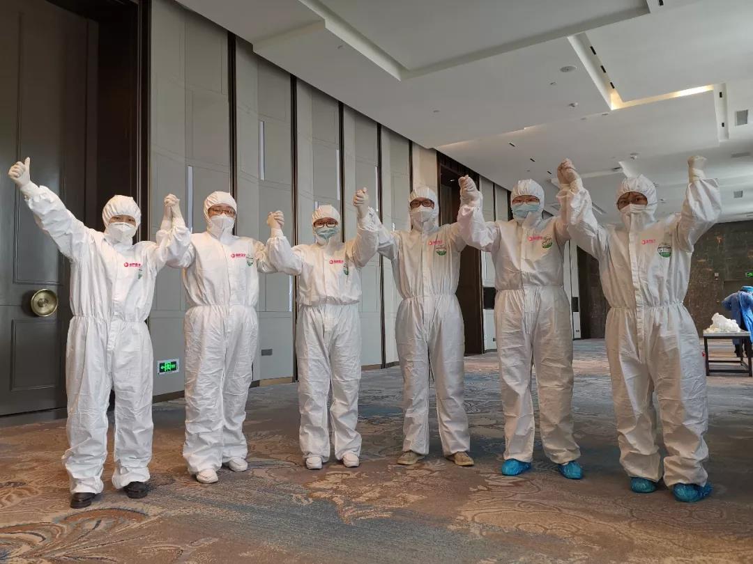 晚上十點(diǎn)多,大家仍然在反復(fù)溫習(xí)筆記,不斷練習(xí)穿脫防護(hù)服。穿防護(hù)服:十五個左右的步驟;脫防護(hù)服:二十多個步驟。每一個重要動作要練習(xí)上百次,穿脫幾次后,往往汗流浹背。