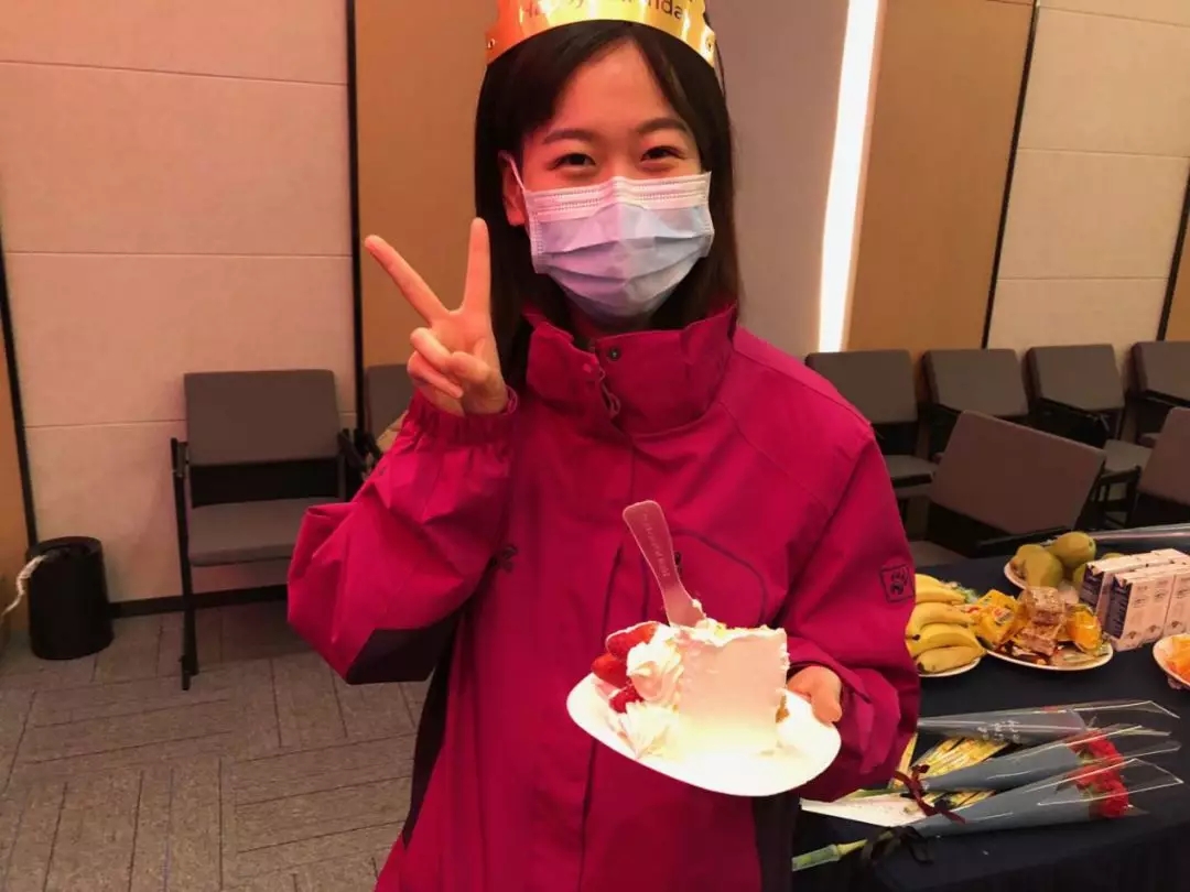 生日會場簡單而溫馨,一個大蛋糕放在了桌子中央?!巴郏猩盏案獍?!太棒了!”90后小姑娘開心的拍手,這是她馳援武漢一來,第一次吃到蛋糕。