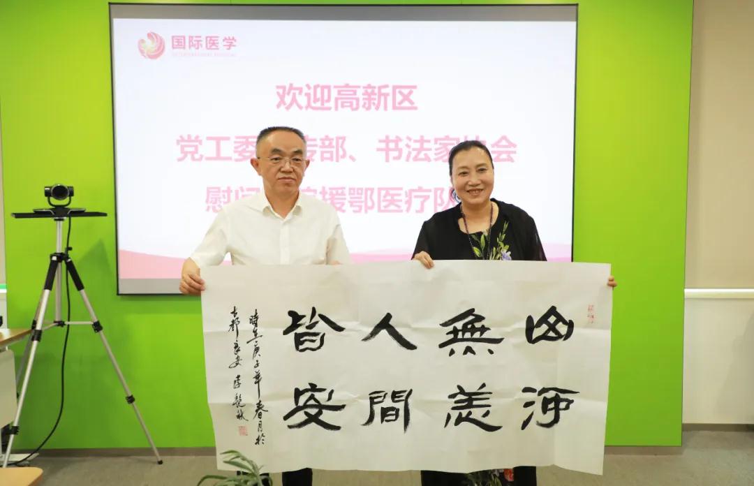 5月12日第109個國際護(hù)士節(jié),西安高新區(qū)黨工委宣傳部、書法家協(xié)會一行14人蒞臨西安國際醫(yī)學(xué)中心醫(yī)院,以書籍和書法作品慰問在疫情期間馳援湖北的抗疫英雄,向他們致以崇高的敬意。醫(yī)院總經(jīng)理王志峰、副院長楊峰等領(lǐng)導(dǎo)和護(hù)理人員代表參會。