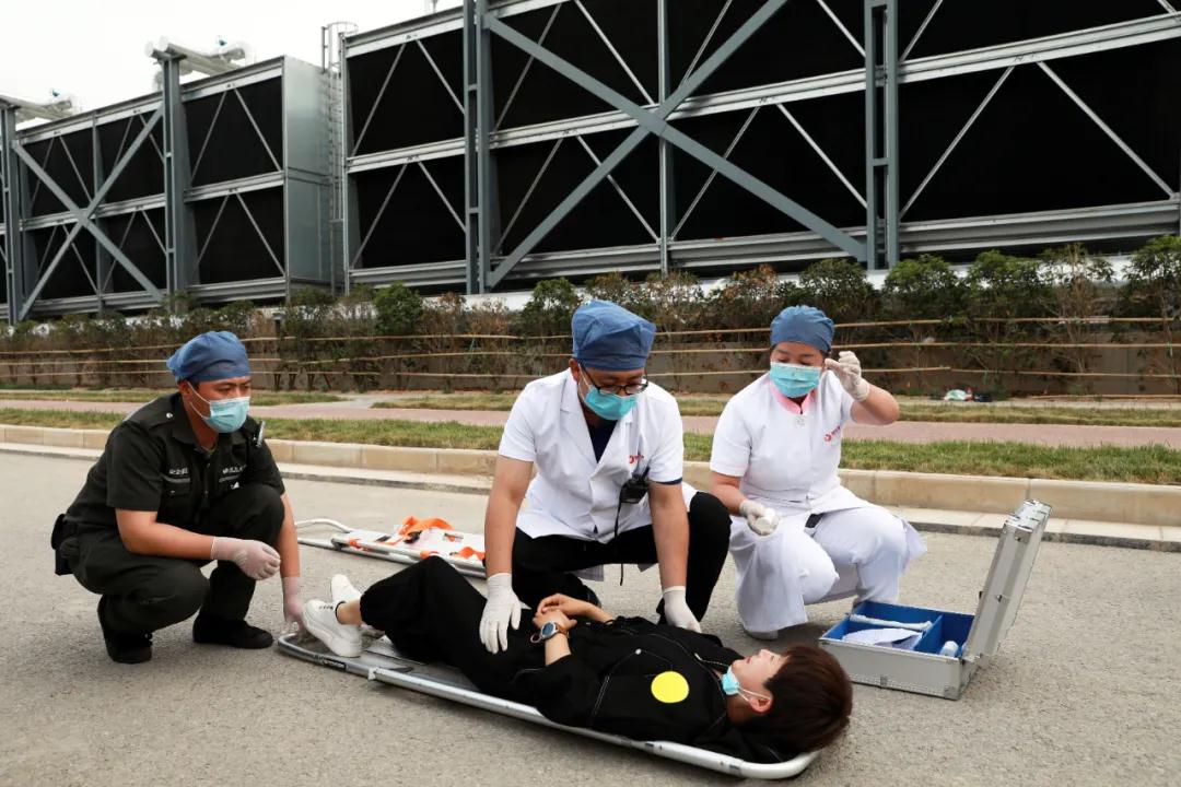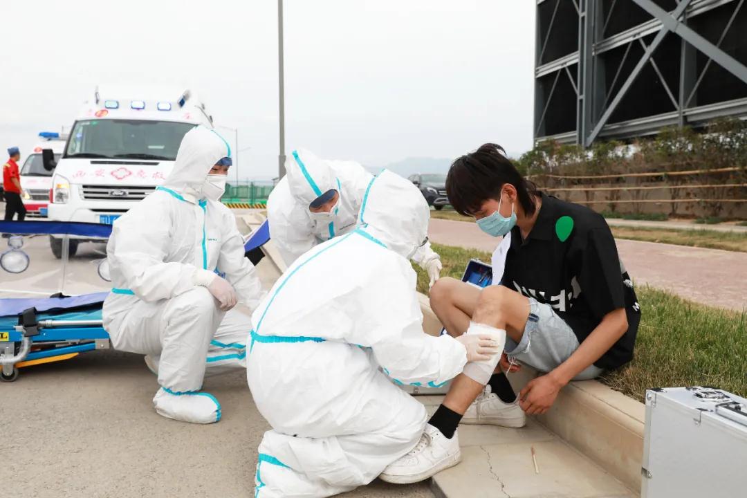 隨后院長尹強通過對講機發(fā)出演練開始指令。在觀摩組的注視下,一支由22輛急救車及20組醫(yī)、護、工人員組成的救援隊立刻趕赴模擬的重大交通事故現(xiàn)場進行應急救援。