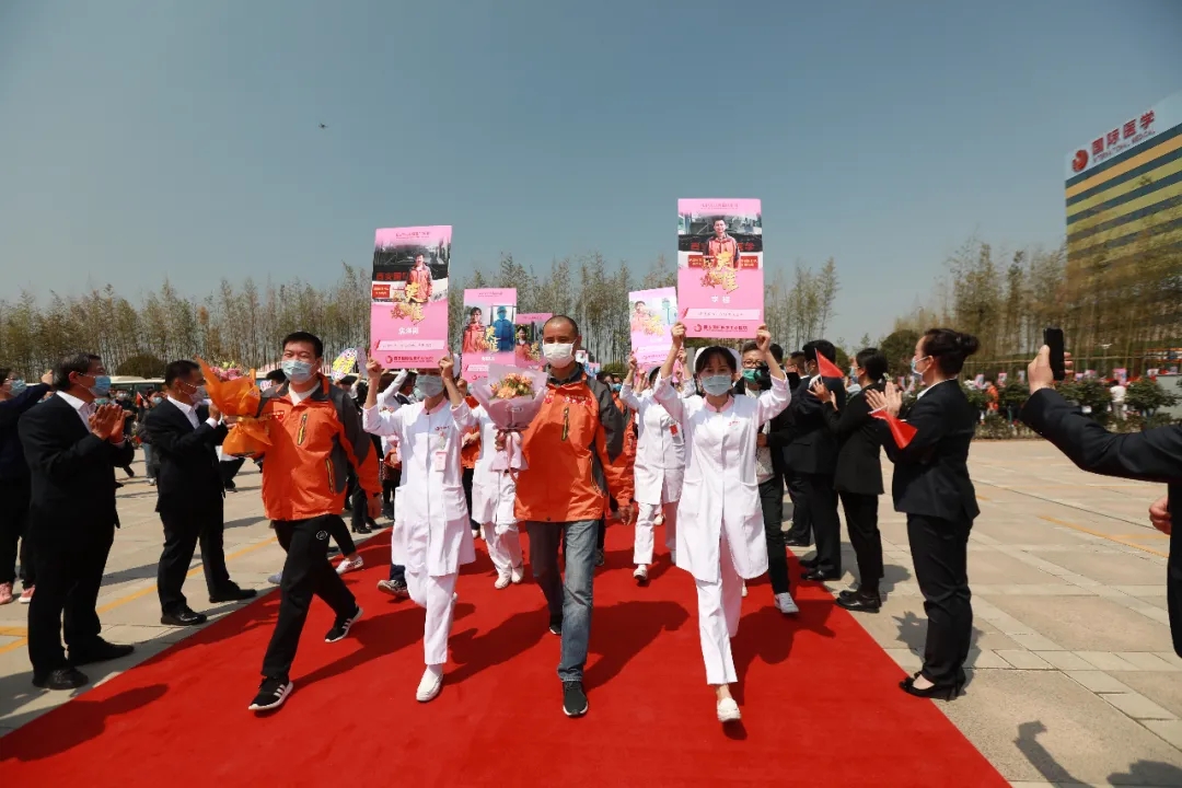鮮花、掌聲、歡迎曲。西安國際醫(yī)學中心醫(yī)院萬人廣場的百米紅毯格外引人注目。親人和工作人員夾道歡迎抗疫英雄。國際醫(yī)學實際控制人劉建申、董事長史今、副董事長曹鶴玲、副董事長王愛萍、監(jiān)事會主席曹建安、副總裁孫文國、副總裁丁震、副總裁王杲、副總裁孫義寬、財務(wù)總監(jiān)王亞星等集團領(lǐng)導,以及西安國際醫(yī)學中心醫(yī)院、西安國際醫(yī)學高新醫(yī)院、西安國際醫(yī)學商洛醫(yī)院的領(lǐng)導出席。歡迎儀式由總裁劉瑞軒主持。