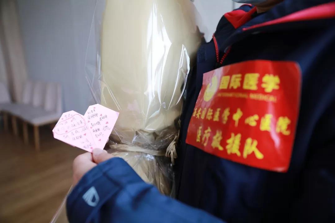 “國際醫(yī)學加油!武漢加油!中國加油!”全體醫(yī)護人員鏗鏘有力的聲音傳達出身為國際醫(yī)學人的自豪感與使命感,堅定了同舟共濟、抗擊疫情的信心。