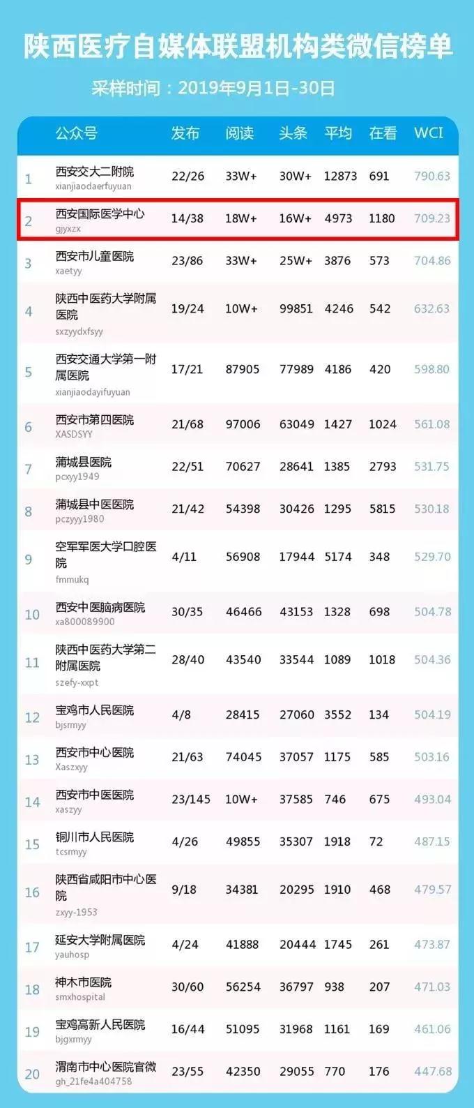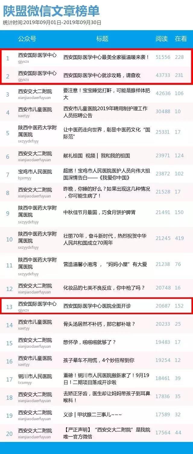 陜西醫(yī)療自媒體聯(lián)盟9月份機(jī)構(gòu)類微信榜單