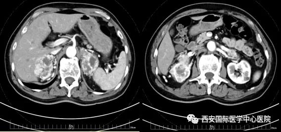 今年七十五歲的患者,來自陜西省商洛市,四月前因腰背部疼痛就診于當(dāng)?shù)蒯t(yī)院,行CT檢查發(fā)現(xiàn)“右腎、雙側(cè)腎上腺占位,前縱膈淋巴結(jié)腫大,雙肺多發(fā)結(jié)節(jié)、胸椎骨質(zhì)破壞,考慮轉(zhuǎn)移瘤”。為進(jìn)一步診斷治療,患者的兒子帶他來到西安某三甲醫(yī)院,查泌尿系CT提示“右腎占位性病變,多考慮腎癌,雙側(cè)腎上腺多發(fā)轉(zhuǎn)移灶,腹膜后多發(fā)腫大淋巴結(jié)”;行穿刺活檢提示“腎透明細(xì)胞癌”;并給予患者口服靶向藥物的治療方案。