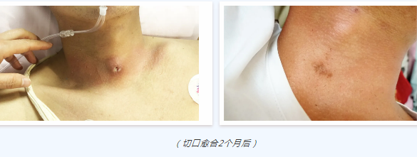 患者妻子含淚回顧了當(dāng)時(shí)的情況,“當(dāng)他被推進(jìn)重癥醫(yī)學(xué)科的那一刻,我的心如撕裂般的疼痛,家人們也早已泣不成聲,我們面對(duì)的是一個(gè)陌生的地方,不知道里面正在發(fā)生著什么,對(duì)突如其來(lái)的意外更是無(wú)所適從。尤其是醫(yī)生說(shuō)需要做氣管切開時(shí),一想到要在他脖子上開一道口子我們就心痛,擔(dān)心會(huì)影響他說(shuō)話;擔(dān)心傷口長(zhǎng)不上;擔(dān)心他將來(lái)留個(gè)疤,甚至懷疑做了氣管切開就是沒(méi)救了?,F(xiàn)在看來(lái),我們的擔(dān)心是多余的?,F(xiàn)在脖子上的傷口不僅很小而且很美觀,不仔細(xì)看根本看不出來(lái)?!?