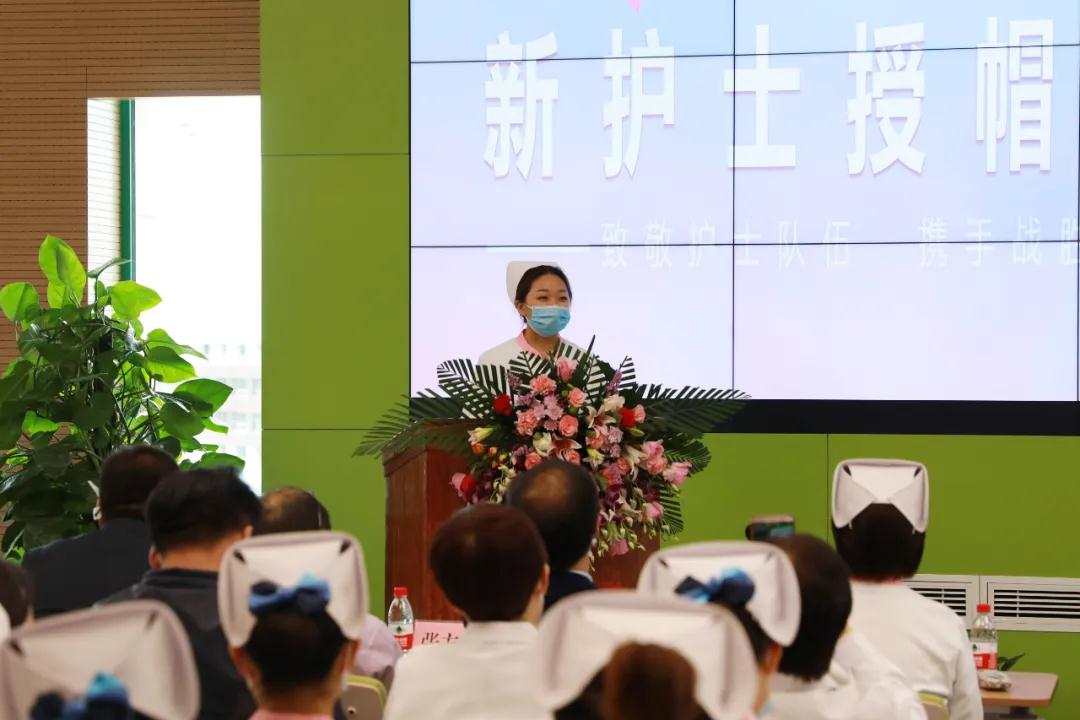 血液凈化中心護士張晶代表全院240名新入職護士發(fā)言,她說,戴在頭上的不單單是一頂燕尾帽,它是責任,是使命,是擔當,更是對新護士們的殷切希望。新冠疫情襲來時,前輩們用實際行動闡釋“南丁格爾精神”和“國際醫(yī)學精神”,新護士們將傳承使命,用平凡的工作佑護無法衡量的價值!