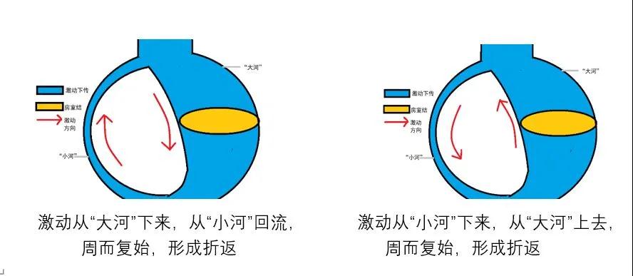 我們把從房室結(jié)走的通道(正道),比做“大河”,