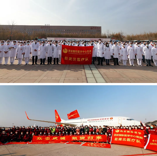 2020年新冠疫情襲來(lái)之時(shí),作為一家有使命感和責(zé)任感的醫(yī)院,僅開(kāi)業(yè)半年的西安國(guó)際醫(yī)學(xué)中心醫(yī)院自備“干糧”, 組建醫(yī)療隊(duì)馳援湖北,陸續(xù)在武漢市第八醫(yī)院、隨州市中心醫(yī)院等醫(yī)療機(jī)構(gòu)開(kāi)展醫(yī)療救治工作,圓滿完成抗疫任務(wù)。