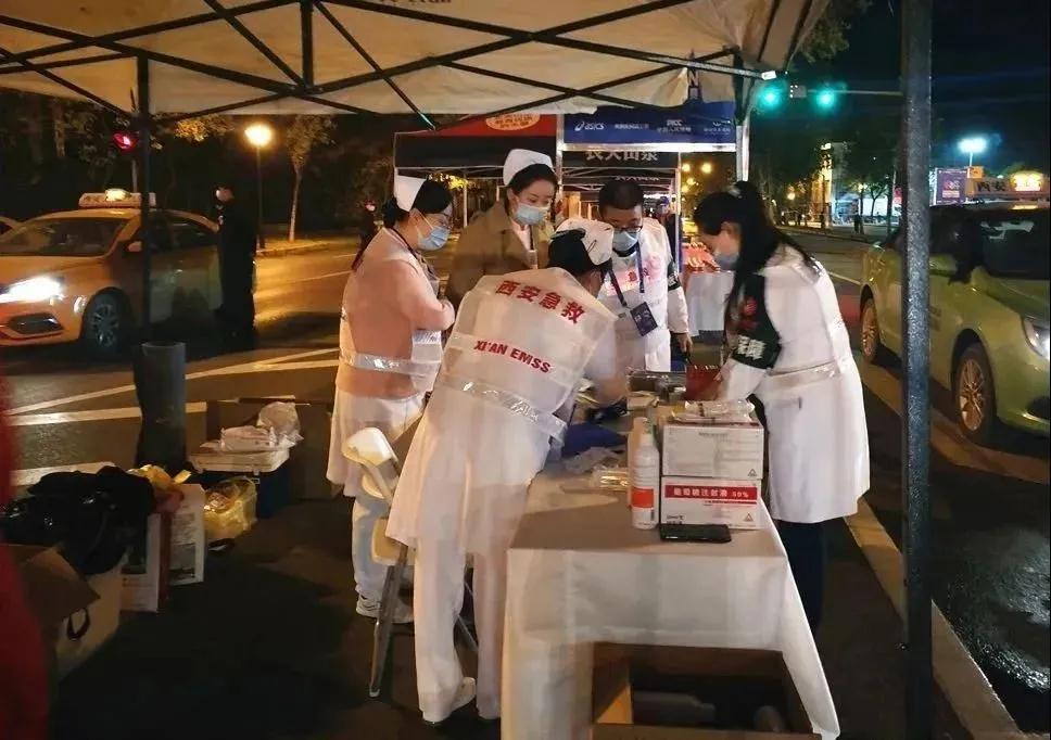凌晨4點,醫(yī)療保障組分成3隊,分乘4輛車從醫(yī)院統(tǒng)一出發(fā)前往賽事現(xiàn)場。到達指定地點后,團隊立刻按照前期演練分工進行相關(guān)準(zhǔn)備工作。7點30分,2020西安國際馬拉松正式鳴槍開跑,現(xiàn)場保障人員及時響應(yīng),積極救助受傷參賽選手,專業(yè)的技術(shù)和溫馨的言語,讓受傷的的選手們感到溫暖。