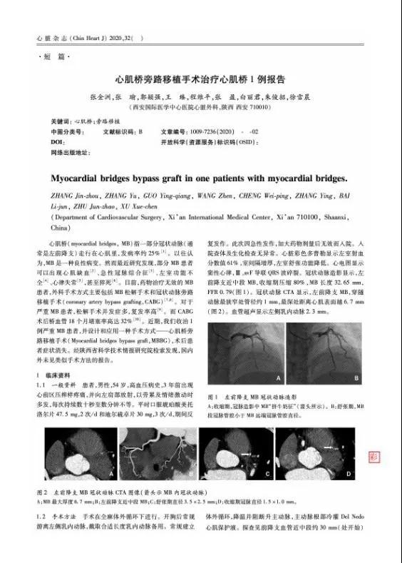 近日,西安國際醫(yī)學(xué)中心醫(yī)院心臟病醫(yī)院副院長張金洲教授等撰寫的“Myocardial bridge Bypass Graft: a Novel Surgical Procedure for Extensive Myocardial Bridges”(心肌橋旁路移植手術(shù):治療廣泛心肌橋的一種新的外科術(shù)式)被心胸外科領(lǐng)域的頂級期刊Ann Thorac Surg接受,代表西安國際醫(yī)學(xué)中心醫(yī)院心臟外科首創(chuàng)的這一術(shù)式得到國際同行的認(rèn)可。2020年4月,張金洲教授首次應(yīng)用這一術(shù)式治療一例難治性廣泛心肌橋病人,取得滿意的療效。隨后,心血管領(lǐng)域國內(nèi)權(quán)威期刊《心臟雜志》以快速通道的方式報道了這一術(shù)式,引起國內(nèi)同行和患者的關(guān)注。至此,我院心臟外科首創(chuàng)技術(shù)獲得國內(nèi)外同行的認(rèn)可。