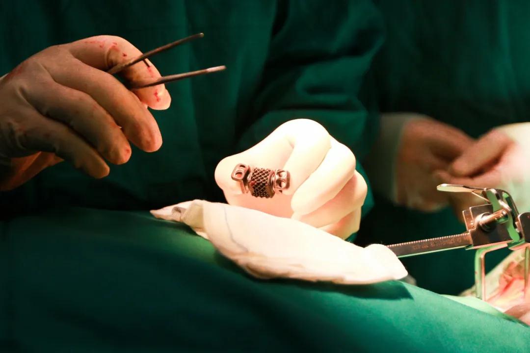 12月1日,西安國(guó)際醫(yī)學(xué)中心醫(yī)院骨科醫(yī)院脊柱外科賀西京團(tuán)隊(duì)為一位63歲脊髓型頸椎病伴不完全癱瘓的患者實(shí)施了頸4椎體椎間盤切除、3D打印Ti6Al4V合金可動(dòng)人工頸椎——椎間盤復(fù)合體植入術(shù)。
