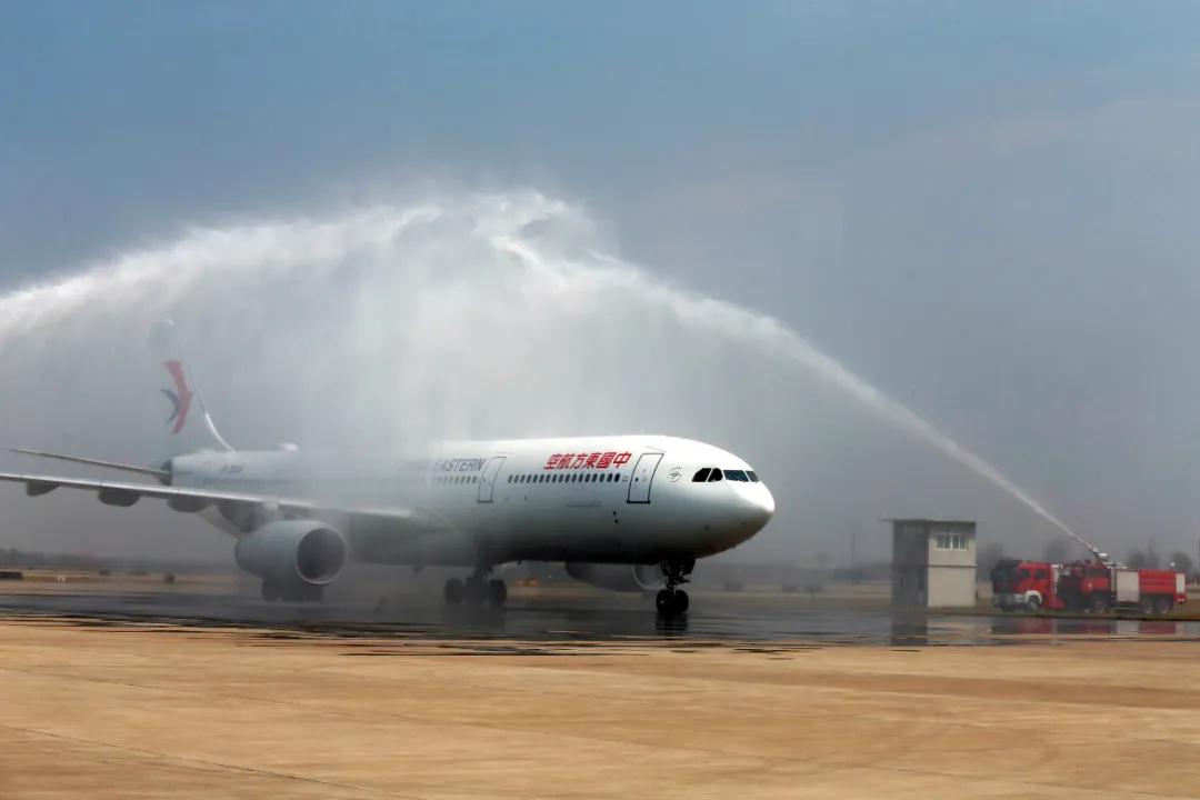 2020年3月24日下午,當(dāng)兩架滿載 “白衣戰(zhàn)士”的包機(jī)降落下來(lái),依次沿著寬闊平坦的跑道滑行時(shí),兩邊早已準(zhǔn)備好大功率消防車,轟然噴出兩股清泉似的水柱,形成了一道銀亮亮的“水門”,在滿天晚霞的映照下,如同天空中升起一道美麗的彩虹。