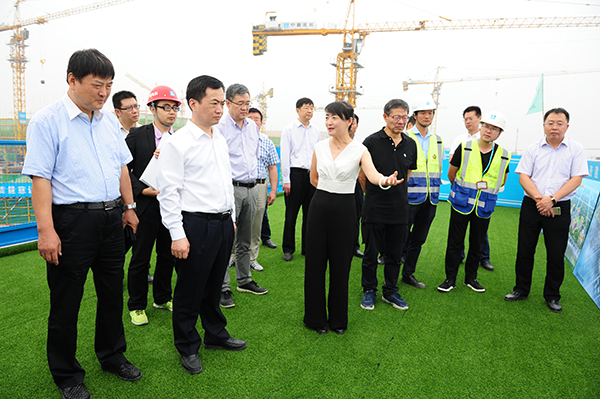 隨后李毅一行在史總帶領(lǐng)下,來到工地現(xiàn)場(chǎng)的二層觀景平臺(tái),面對(duì)規(guī)模宏大,塔吊林立的建筑現(xiàn)場(chǎng),看到項(xiàng)目整體浮出地面,中心醫(yī)技樓已建至二層,李書記對(duì)項(xiàng)目建設(shè)進(jìn)度表示驚喜,同時(shí)對(duì)建設(shè)管理表示肯定。期間,史總結(jié)合施工現(xiàn)場(chǎng)和效果圖為李書記詳細(xì)介紹了國際醫(yī)學(xué)城的建設(shè)架構(gòu),功能劃分等情況,之后還就規(guī)劃建設(shè)的“一心兩翼 天使之城”健康中國小鎮(zhèn)的設(shè)計(jì)理念,“五位一體”功能布局等做了詳細(xì)介紹和說明。