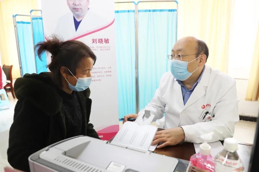 在診室里,一位57歲的患者拿著病歷和影像資料前來咨詢,劉曉敏主任為她做了全面檢查,并普及乳腺疾病的防治保健知識(shí)。