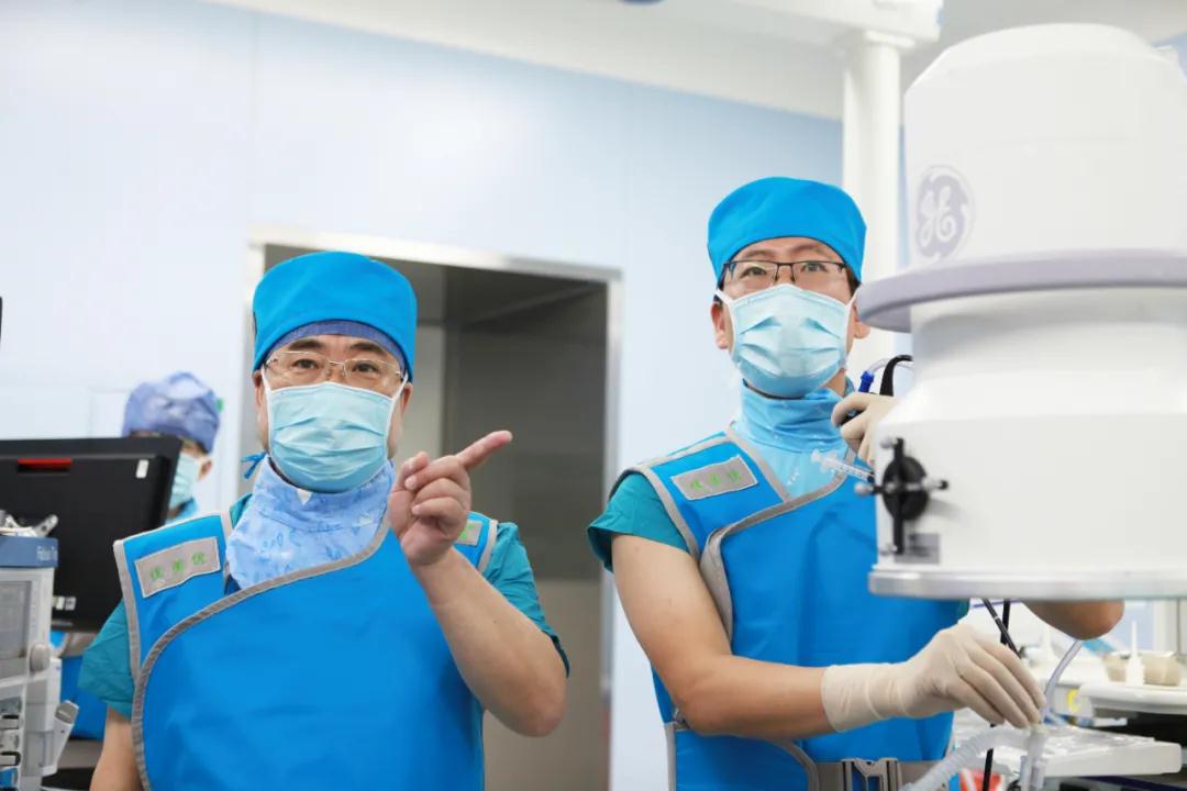患者肺部結(jié)節(jié)位于右肺上葉后段外,需要術(shù)者操作氣管鏡右轉(zhuǎn)90?后再下轉(zhuǎn)70?-80?,難度極大。BTPNA技術(shù)發(fā)明者Herth教授也曾因?yàn)榉紊先~結(jié)節(jié)導(dǎo)致操作失敗。術(shù)中吳昌歸院長(zhǎng)站臺(tái)指導(dǎo),樊建勇醫(yī)生操作C臂X光機(jī)確定鞘管進(jìn)入病灶,超聲小探頭二次確認(rèn)出現(xiàn)低回聲區(qū)后(出現(xiàn)低回聲區(qū)說(shuō)明鞘管已進(jìn)入病灶),所有人才松了一口氣,成功完成該肺部結(jié)節(jié)活檢術(shù)。術(shù)后病理結(jié)果回報(bào)良性,劉某終于解開(kāi)了多年的心結(jié)。