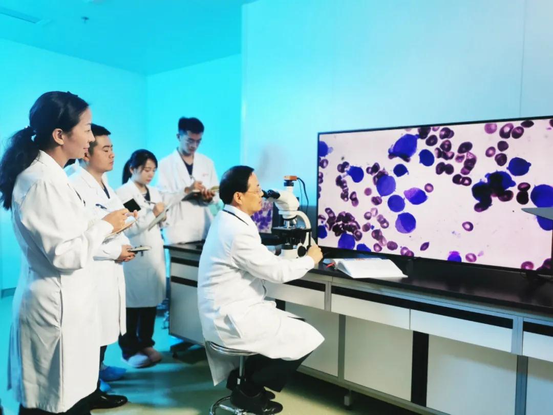 方向比努力更重要。梁英民決定從患者的基本資料入手,迅速捕捉到了“地質(zhì)勘探員、野外工作經(jīng)歷、沒(méi)有做過(guò)寄生蟲(chóng)檢測(cè)”的關(guān)鍵詞。順藤摸瓜,再次做骨髓檢測(cè),可能會(huì)有突破。極力勸說(shuō)患者后,梁英民拿到了骨髓樣本,隨即前往實(shí)驗(yàn)室,大腦高速運(yùn)轉(zhuǎn)的狀態(tài)讓他無(wú)比興奮,目不轉(zhuǎn)睛生怕漏掉任何一個(gè)細(xì)節(jié),終于,他在巨噬細(xì)胞里揪出了“嫌疑犯”——利杜氏體即黑熱病的原兇!要推翻之前的結(jié)論不是件易事,梁英民徹夜未眠,尋找更多有力的證據(jù)。最終,對(duì)癥治療后,患者痊愈出院。也是從那時(shí)起,梁英民堅(jiān)持為每一位患者閱片,即使在成為科主任后,梁英民仍保持親力親為用顯微鏡查看疑難患者的血液細(xì)胞形態(tài)的習(xí)慣,這也形成了每周兩天血液病科室醫(yī)生與實(shí)驗(yàn)室技術(shù)員共同學(xué)習(xí)交流的傳統(tǒng)。