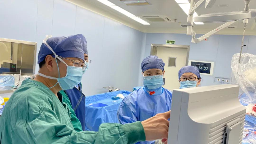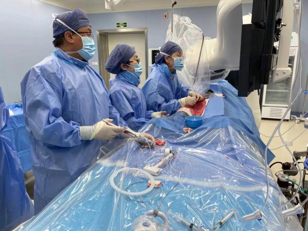 患者已有3枚支架,右冠狀動脈還是完全閉塞的狀態(tài),考慮到手術風險極大,李偉杰建議在體外膜肺氧合技術(ECMO)輔助下行支架植入術。體外膜肺氧合技術是一種高端的人工心肺替代技術,可以暫時代替患者的心臟和肺臟進行做工,常用于各種危重癥患者。由于手術難度高,風險大,李偉杰副院長帶領由衛(wèi)錦娟副主任醫(yī)師、郭艷杰副主任醫(yī)師、王長鷹主治醫(yī)師、孫闖主治醫(yī)師組成的心臟內科三病區(qū)手術核心團隊分工合作,在心臟外科二病區(qū)主任程亮團隊的保駕護航下,手術最終順利完成,患者平穩(wěn)返回病房,家屬激動不已。第一位患者手術結束后,在李偉杰的帶領下,兩支團隊又著手為另一位嚴重三支病變患者實施了ECMO輔助下支架植入術,手術在團隊密切配合下順利完成。