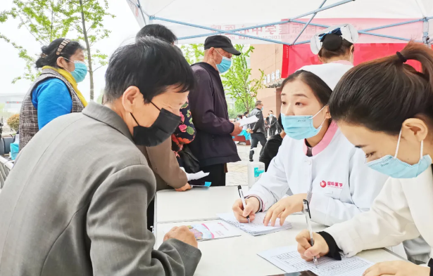 義診現(xiàn)場,各科醫(yī)護人員與前來咨詢的群眾充分溝通,免費為大家測血壓、血糖,查看檢查報告并耐心地講解和指導(dǎo),并給出治療建議。
