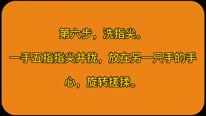 3、認真揉搓雙手至少 15s,注意清洗雙手所有皮膚,包括指背、指尖和指縫,具體揉搓步驟(即七步洗手法步驟):