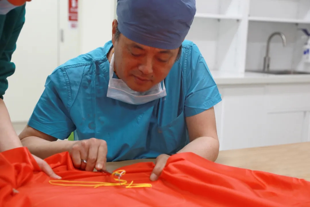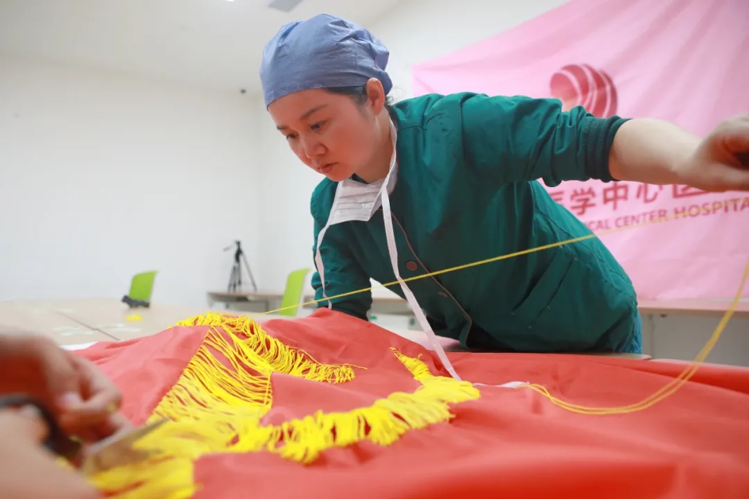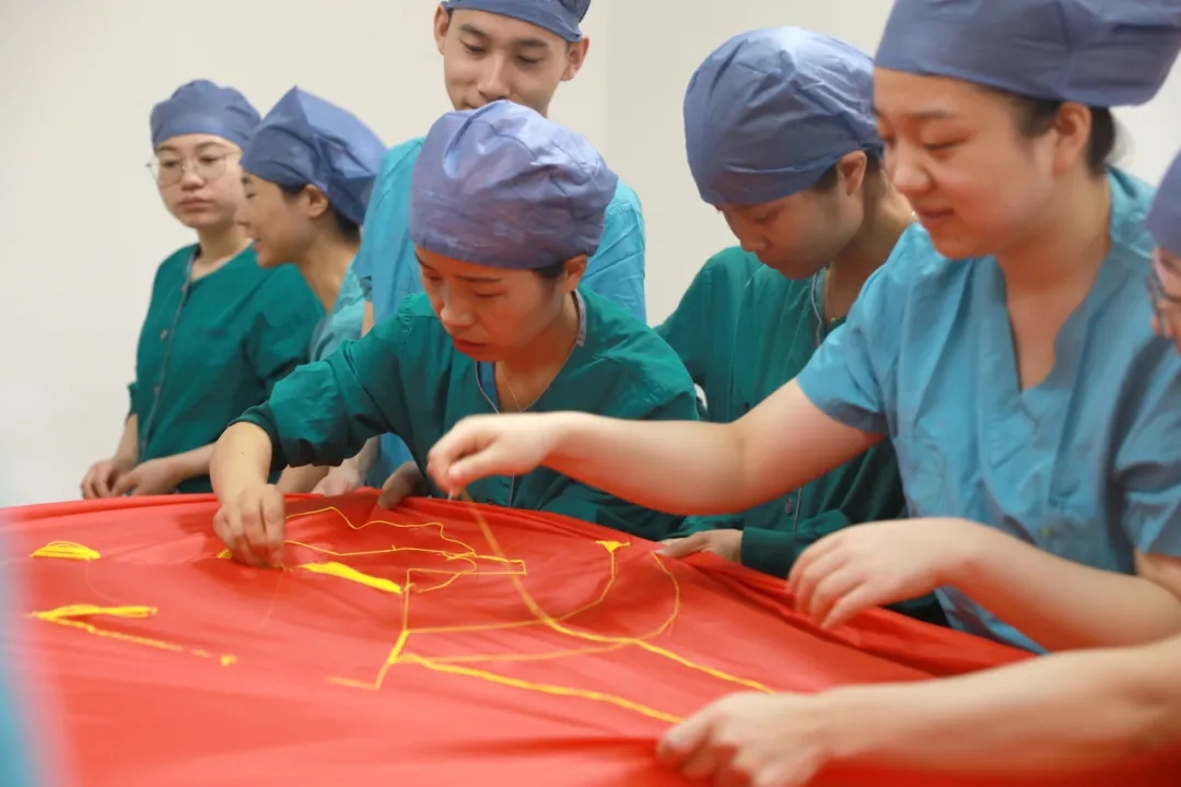 有著15年黨齡的主管護(hù)師譚婷婷覺(jué)得這項(xiàng)活動(dòng)很有紀(jì)念意義。“‘老革命’遇到了新問(wèn)題,用手術(shù)針繡旗有難度,既要保持旗面平整,又要保證針腳密集,這樣繡出來(lái)的圖案立體,色彩飽滿(mǎn)。”通過(guò)活動(dòng),她充分感受到向上奮進(jìn)的正能量,將永葆黨員的先進(jìn)性。