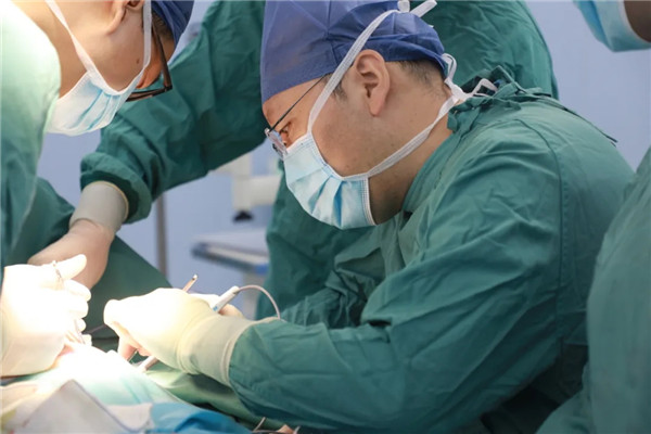 做好了充分準(zhǔn)備與預(yù)案,手術(shù)臺前的劉曉敏鎮(zhèn)定專注,在分離切斷王金花的甲狀腺懸韌帶后,他抽絲剝繭,一根根處理甲狀腺上極血管,繼而結(jié)扎切斷甲狀腺中、下的靜脈、動脈,在由峽部切斷處起始分離甲狀腺背面時,劉曉敏仔細(xì)辨認(rèn)喉返神經(jīng)和甲狀旁腺,確保不傷分毫。一般情況下,手術(shù)至此可以順利結(jié)束??赏踅鸹ㄊ俏焕淆g患者,由于氣管軟化,加上腫塊長久壓迫,氣管就像失去回彈力的彈簧,從醫(yī)學(xué)角度看,患者已可以治愈,短期也無生命大礙,可彈不起來的“彈簧”還會重新聚攏在一起,讓老太太喘不上氣。一次手術(shù)能解決的問題,絕不讓患者再受二茬罪,劉曉敏又對王金花實(shí)施氣管懸吊術(shù),把“癱瘓”了的氣管朝兩邊拉起,給氣管留出足夠的空間出氣。