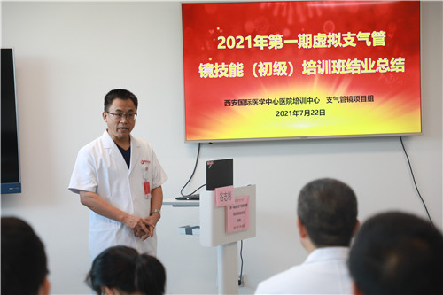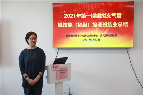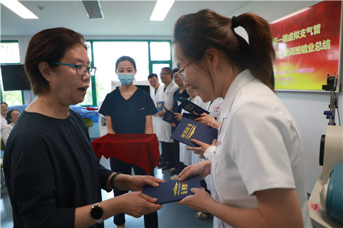 在結(jié)業(yè)典禮上,李武平院長(zhǎng)頒發(fā)培訓(xùn)證書(shū),對(duì)結(jié)業(yè)學(xué)員表示祝賀;對(duì)來(lái)自支氣管鏡檢查室、培訓(xùn)中心兼職教師谷志彬教授的專業(yè)素養(yǎng)與辛苦付出表示贊揚(yáng);對(duì)康福霞主任帶領(lǐng)下的培訓(xùn)中心工作團(tuán)隊(duì)給予高度肯定。同時(shí)李院長(zhǎng)指出:“每一段看似結(jié)束的培訓(xùn)旅程、都應(yīng)是每位學(xué)員職業(yè)生涯新的開(kāi)始。國(guó)際醫(yī)學(xué)培訓(xùn)中心作為醫(yī)生的“圖書(shū)館”,應(yīng)當(dāng)時(shí)刻了解臨床所需,充分利用各種高端模擬設(shè)備,建立完善的課程體系,助力更多臨床醫(yī)生時(shí)刻充電;學(xué)員應(yīng)當(dāng)積極參加并珍惜每一次培訓(xùn)機(jī)會(huì),豐滿自己羽翼。”