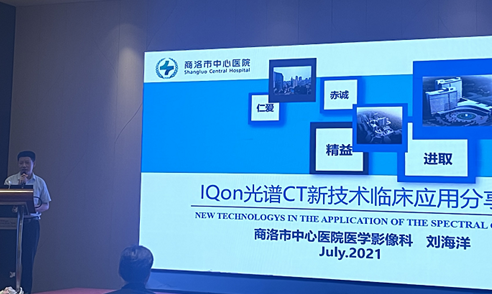商洛市中心醫(yī)院CT室主任劉海洋教授分享“IQon光譜CT 新技術(shù)臨床應(yīng)用分享,闡述了多參數(shù)平臺以及光譜臨床化的應(yīng)用,即提升隱匿性病灶檢出、腫瘤分期、血管支架再狹窄評估、腦卒中的早期診斷、降低圖像偽影等方面。