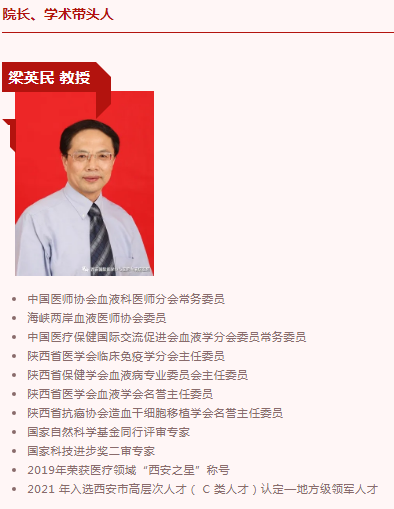 西安國際醫(yī)學中心醫(yī)院血液病院,成立于2019年,是一家集醫(yī)療、教學、科研為一體的綜合性??漆t(yī)院,擁有達到國家標準的外周造血干細胞/骨髓移植醫(yī)學中心。骨髓移植中心設(shè)有24張百級凈化層流倉、移植相關(guān)的醫(yī)療設(shè)備、病毒檢測技術(shù)及移植患者病情24小時監(jiān)測系統(tǒng)。