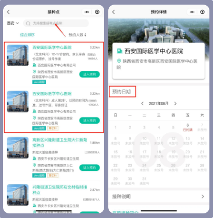 西安國際醫(yī)學(xué)中心醫(yī)院現(xiàn)面向全民開展新冠疫苗接種服務(wù),通過關(guān)注“健康西安公眾服務(wù)”小程序,手機操作實現(xiàn)疫苗預(yù)約。