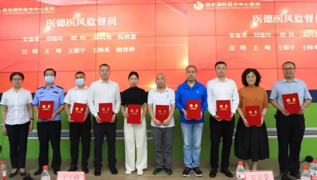 為扎實推進醫(yī)院行風建設,解決圍繞影響群眾看病就醫(yī)感受等突出行風問題,9月9日,西安國際醫(yī)學中心醫(yī)院召開行風建設暨聘任醫(yī)德醫(yī)風監(jiān)督員大會,對正在開展的“衛(wèi)生領域整治漠視群眾利益”、“打擊非法醫(yī)療美容服務”、“糾正醫(yī)藥購銷領域和醫(yī)療服務中不正之風”、“醫(yī)療機構及其工作人員廉潔從業(yè)”專項活動及醫(yī)院行風建設進行再動員、再部署。