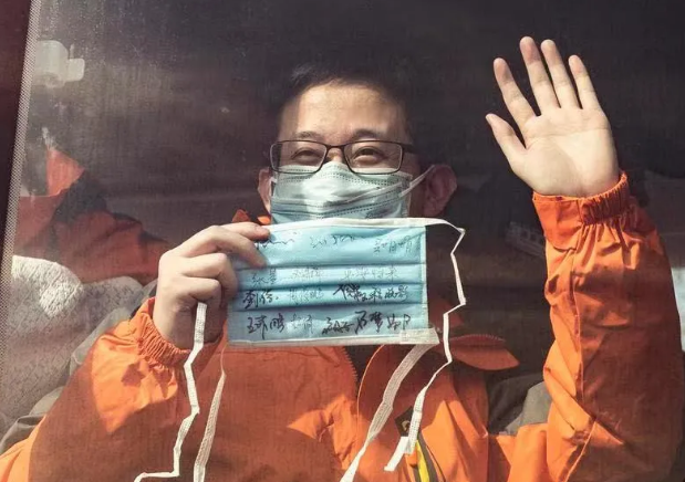 攝影作品《醫(yī)生》內(nèi)容為2020年2月3日,西安國際醫(yī)學(xué)中心醫(yī)院赴武漢醫(yī)療隊(duì)的出征現(xiàn)場,一位即將出發(fā)的醫(yī)生展示寫滿科室同事名字和祝福的口罩。該作品由西安報(bào)業(yè)集團(tuán)攝影記者竇翊明拍攝。