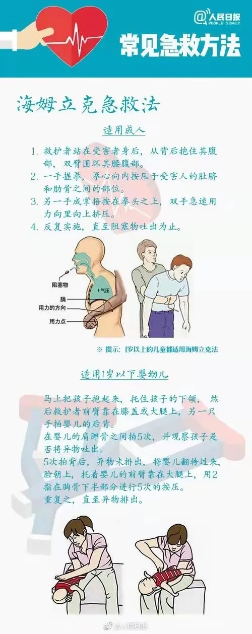 海姆立克急救法是解除氣道異物堵塞的一種急救方法。具體操作如下,有意識(shí)患者取坐位或站立,救助者站在患者身后,雙臂環(huán)抱患者腰部,一手握拳,握拳的拇指抵住患者腹部位于劍突下與臍上的腹中線部位,再用另一手緊握拳頭快速向內(nèi)向上,使拳頭沖擊腹部,反復(fù)沖擊,直到把異物排出,如果患者此時(shí)出現(xiàn)意識(shí)喪失,呼叫無(wú)反應(yīng),立即開(kāi)始實(shí)施心肺復(fù)蘇。