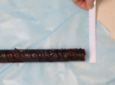 情況緊急!術(shù)中探查后發(fā)現(xiàn),長120cm直徑3cm的螺紋鋼經(jīng)患者右側(cè)會陰部穿入,傷及直腸,途徑膀胱后方,左側(cè)髂總動靜脈之間傷及左腎后,經(jīng)胰腺后方在肝脾之間穿破膈肌,在下肺靜脈前方穿入左肺穿破氣管及左右主支氣管膜部,止于主動脈弓下水平,穿入體內(nèi)的部分達到75cm。