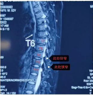 患者劉先生(化名)多年前就被確診為強(qiáng)直性脊柱炎,雖有間歇性治療,但胸椎、頸椎、腰椎等多節(jié)段都有椎管狹窄,尤其是胸9—10和10—11兩個節(jié)段,骨化的黃韌帶和脊髓的硬膜幾乎完全粘連在一起,脊髓壓迫嚴(yán)重。受此影響,劉先生兩條腿沉重、走路沒有力量,需要人攙扶著才能走,且大小便也控制得不好,才52歲的他,生活已完全不能自理。