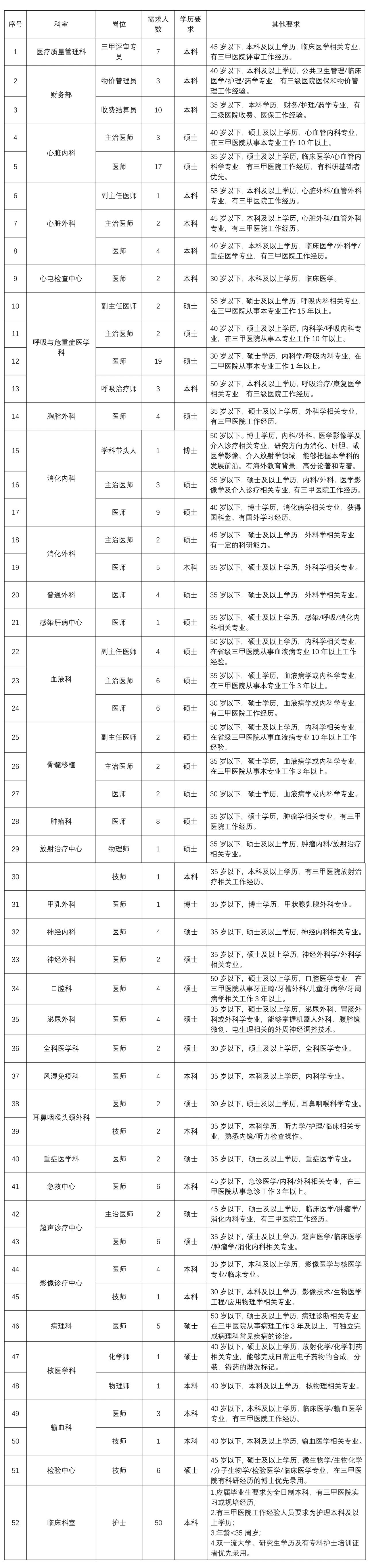 4、應(yīng)聘者要有相應(yīng)的執(zhí)業(yè)證書(shū)和資格證書(shū);應(yīng)聘醫(yī)師崗位者要完成國(guó)家住院醫(yī)師規(guī)范化培訓(xùn)。