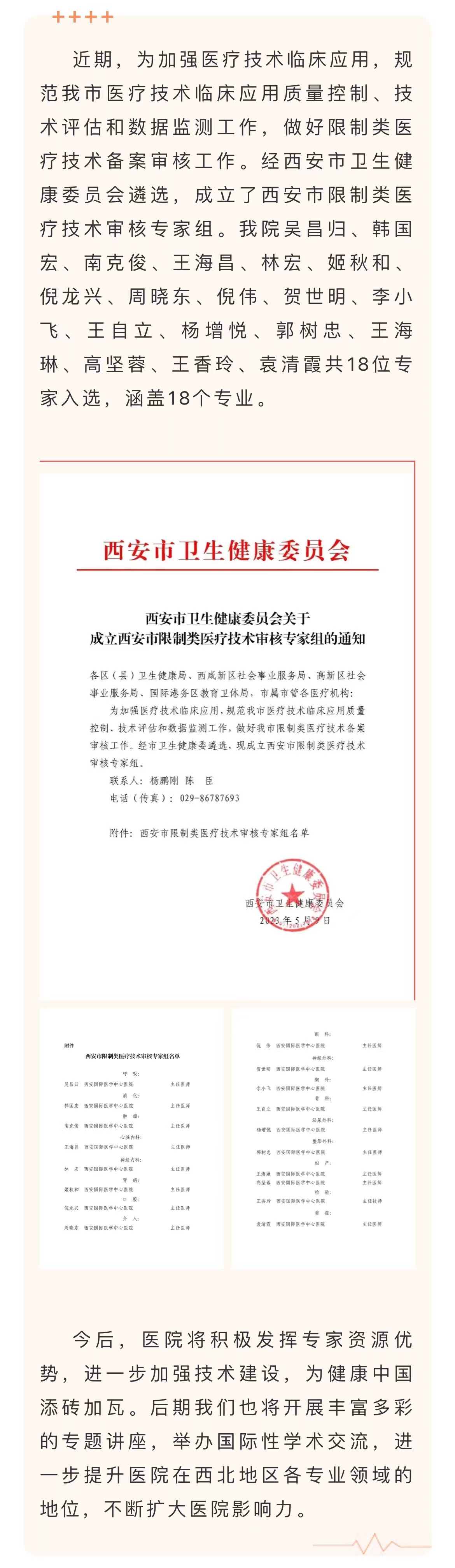我院18位專家被納入西安市限制類醫(yī)療技術審核專家組