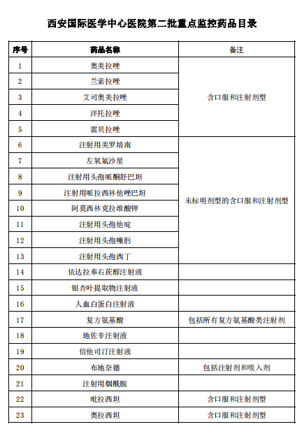 西安國際醫(yī)學中心醫(yī)院第二批重點監(jiān)控藥品目錄
