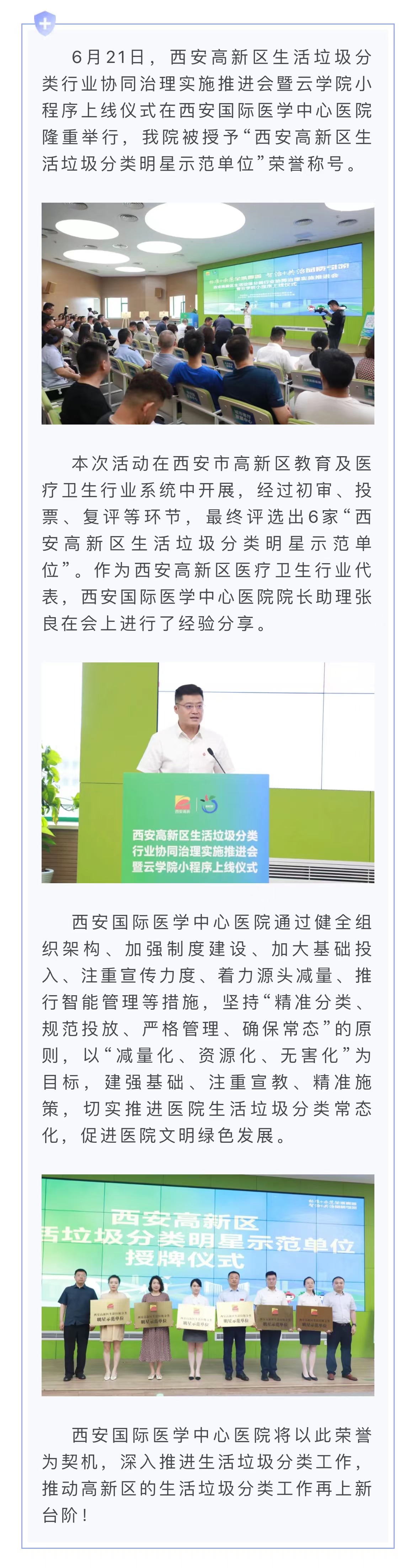 我院被授予“西安高新區(qū)生活垃圾分類(lèi)明星示范單位”榮譽(yù)稱(chēng)號(hào)