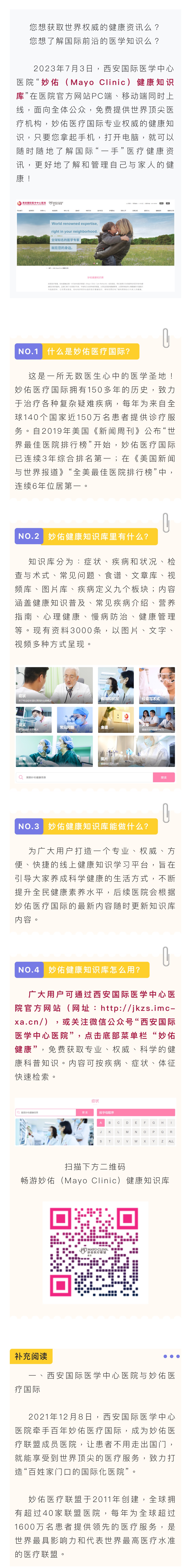 隨時(shí)隨地獲取國(guó)際一手健康知識(shí)!西安國(guó)際醫(yī)中心醫(yī)院“妙佑健康知識(shí)庫(kù)”全新上線!