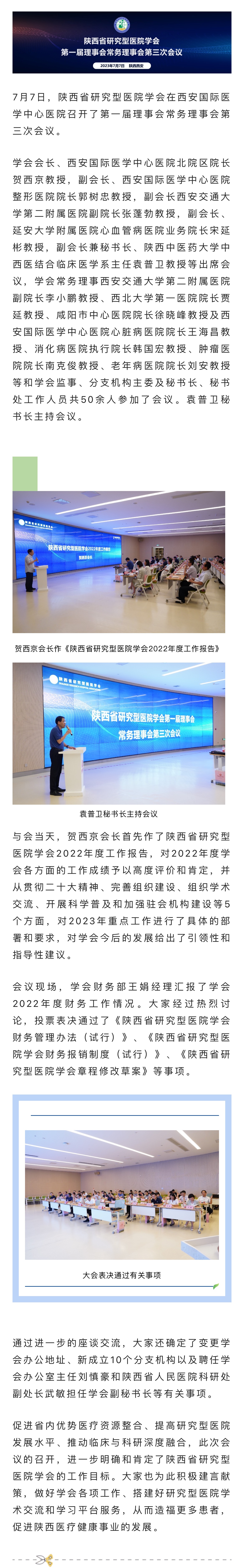 陜西省研究型醫(yī)院學(xué)會(huì)第一屆理事會(huì)第三次會(huì)議在我院召開(kāi)