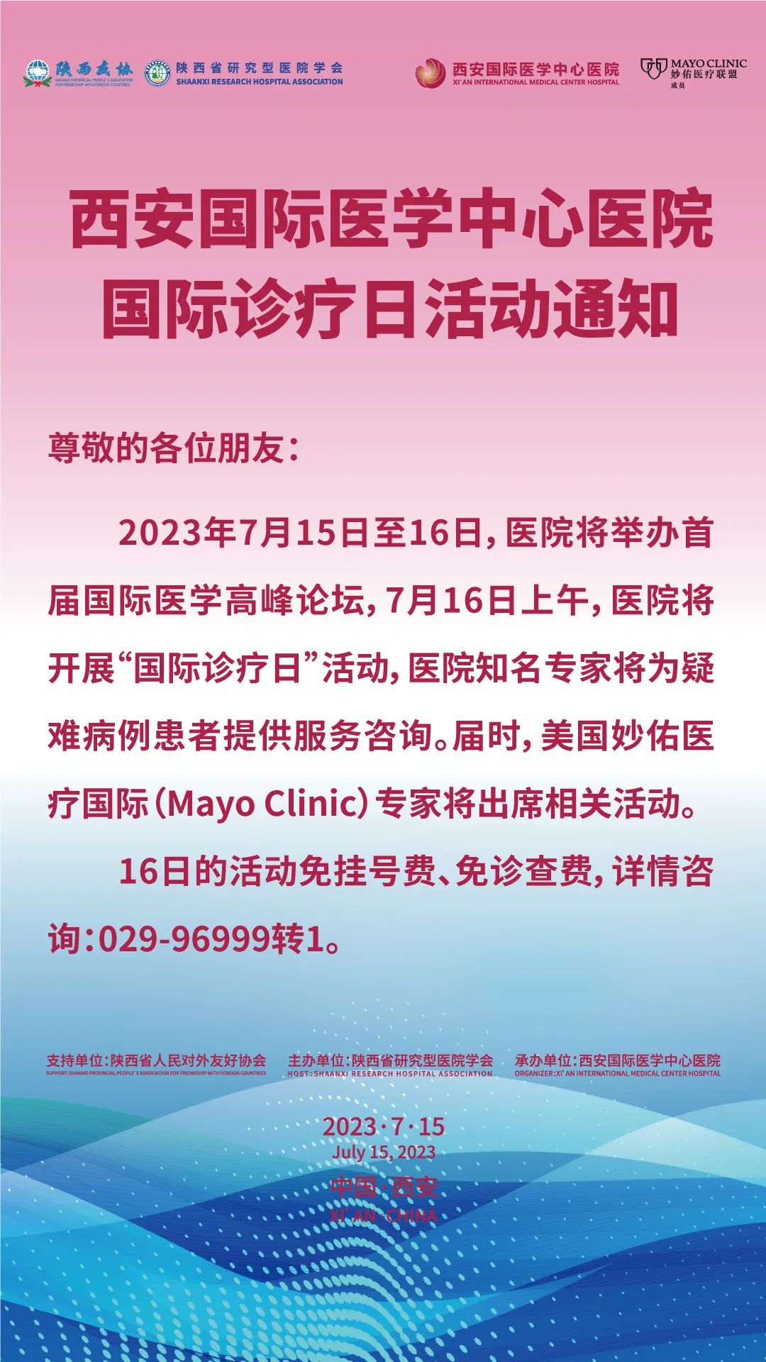 西安國際醫(yī)學(xué)中心醫(yī)院國際診療日活動(dòng)通知