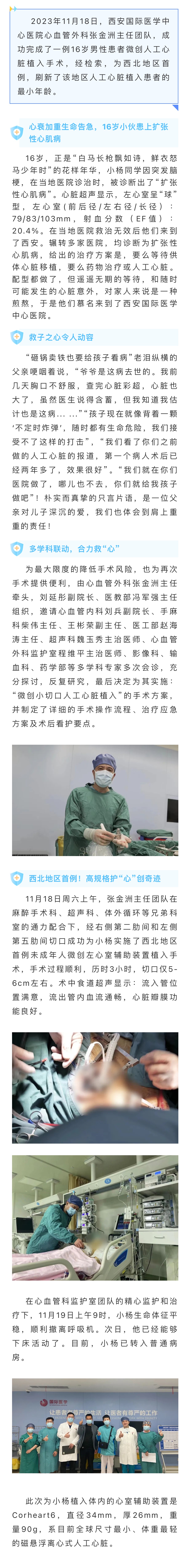 西北地區(qū)首例!西安國際醫(yī)學(xué)中心醫(yī)院為一名16歲小伙完成“人工心臟”微創(chuàng)植入術(shù)