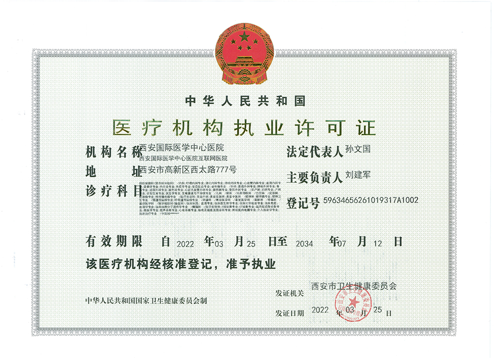 西安國(guó)際醫(yī)學(xué)中心醫(yī)院執(zhí)業(yè)許可證