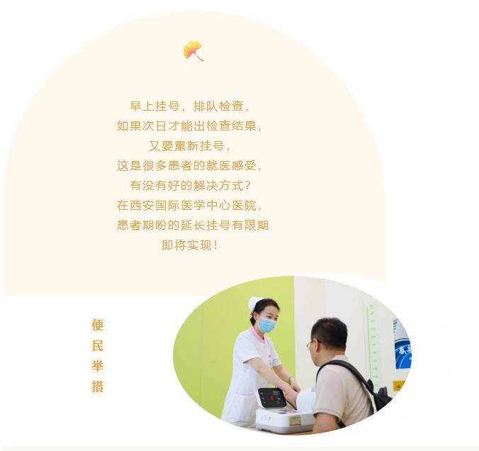 西安國(guó)際醫(yī)學(xué)中心醫(yī)院打破掛號(hào)診療當(dāng)日有效的慣例,創(chuàng)新推出“一次掛號(hào)三天有效”的舉措,進(jìn)一步優(yōu)化門診服務(wù)流程,降低患者就醫(yī)成本,改善患者就醫(yī)感受。自2023年8月7日起,患者掛號(hào)就診后,如果檢驗(yàn)、CT等輔助檢查結(jié)果當(dāng)天未出,三日內(nèi)再次在同院區(qū)、同專業(yè)就診免收掛號(hào)費(fèi),醫(yī)生免費(fèi)為患者解讀報(bào)告,提供治療建議。