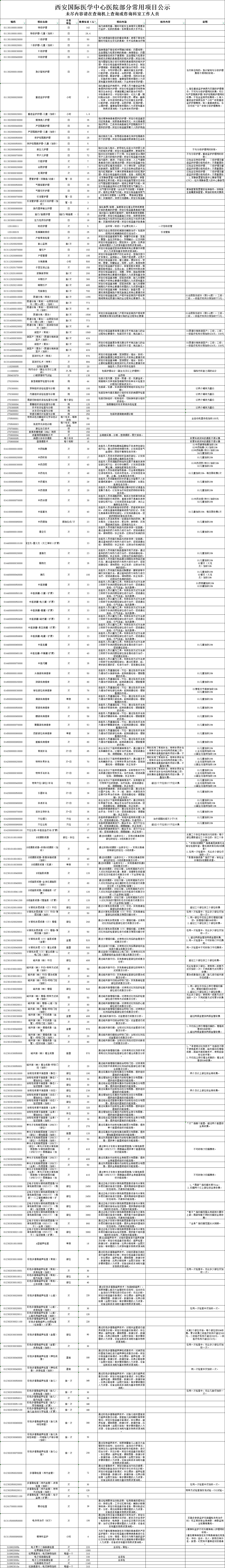 西安國(guó)際醫(yī)學(xué)中心醫(yī)院部分常用項(xiàng)目公示