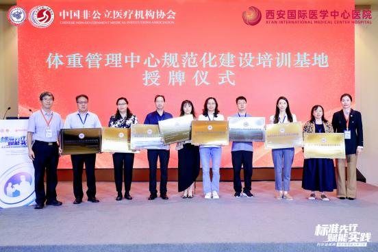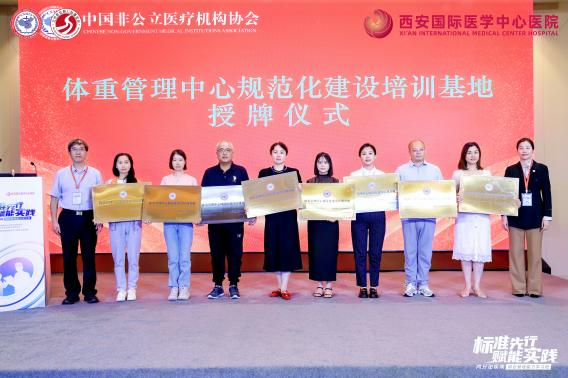 為破解這一困局,中國非公立醫(yī)療機(jī)構(gòu)協(xié)會積極推進(jìn)標(biāo)準(zhǔn)化與協(xié)同化建設(shè),經(jīng)嚴(yán)格評審,對40家機(jī)構(gòu)授予“體重管理中心規(guī)范化建設(shè)培訓(xùn)基地”稱號,并為到場的35家機(jī)構(gòu)代表舉行授牌儀式。
