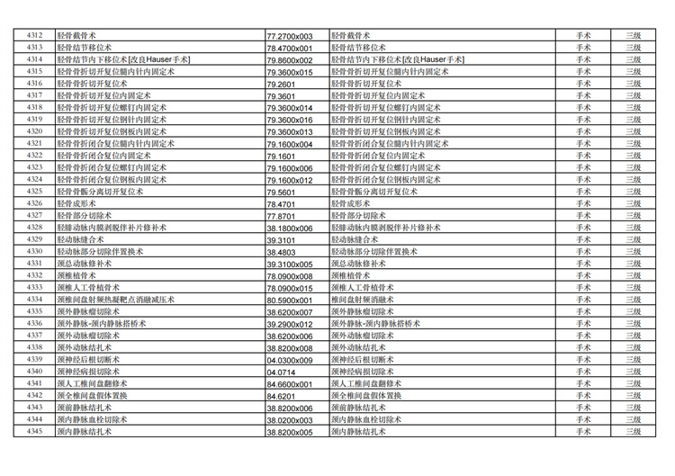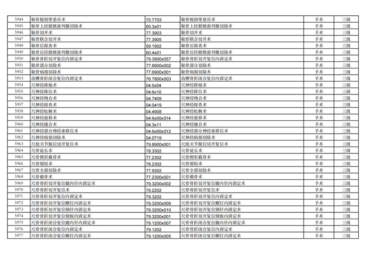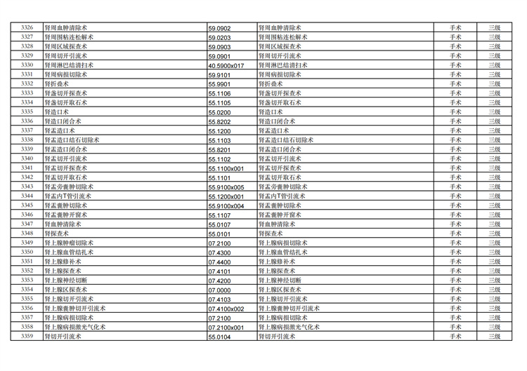 關(guān)于手術(shù)分級(jí)目錄更新的通知