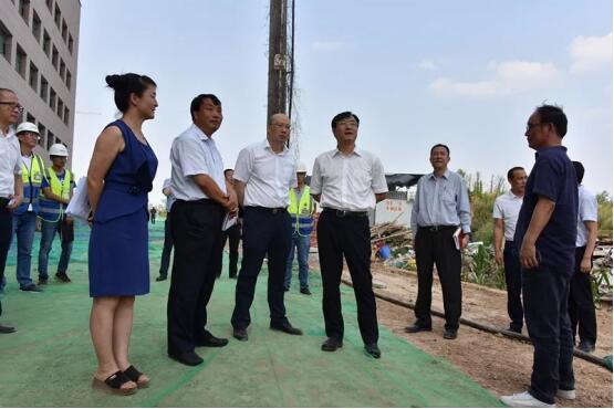調(diào)研中,鐘洪江一行檢查項目建設(shè)進(jìn)度,在工地現(xiàn)場與國際醫(yī)學(xué)實際控制人劉建申、董事長史今進(jìn)行工作溝通,深入了解企業(yè)當(dāng)前建設(shè)面臨的實際問題,現(xiàn)場協(xié)調(diào)解決。